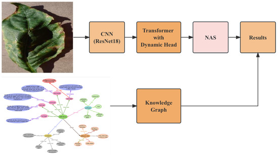 Based on the aforementioned discussions, the primary objective of this study is to investigate the roles and impacts of a neural architecture search and knowledge graphs in chili disease detection tasks on model performance. By comparing with baseline models, this research seeks to ascertain whether these two mechanisms can enhance the model’s efficacy, thereby introducing a high-precision and rapid method for chili disease detection. A chili disease identification system based on a neural architecture search and knowledge graphs was constructed, leveraging the strengths of both to elevate the efficiency and accuracy of disease detection. The main innovations and contributions are as follows: