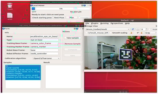 To verify the feasibility of the hand–eye calibration method based on ICP, experiments using an apple-picking robot with an eye-in-hand configuration was conducted. The experimental platform, consisting of both hardware and software components, is shown in Figure 4.