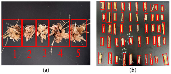 Test sample. (a) Straw sample; (b) Straw stalk sample.