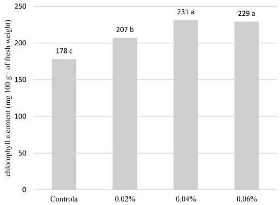 - Chlorophyll a content in leaf blades (mg 100 g−1 of fresh weight);