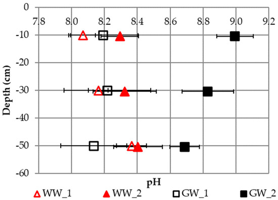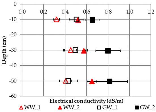 | Depth (cm) | Soil Irrigated Wastewater (SIW) | Soil Irrigated Groundwater (SIG) | ||||