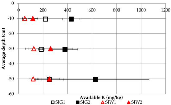 3.2.3. Available and Total K Content