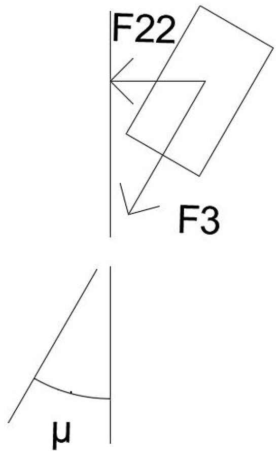 | Steering angle of a tire | Catch force of a tire | Component force of F3 perpendicular to the direction of travel of the tractor before steering |