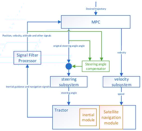 - Xu, G.; Chen, M.; He, X.; Pang, H.; Miao, H.; Cui, P.; Wang, W.; Diao, P. Path following control of tractor with an electro-hydraulic coupling steering system: Layered multi-loop robust control architecture. Biosyst. Eng. 2021, 209, 282–299. [Google Scholar] [CrossRef]