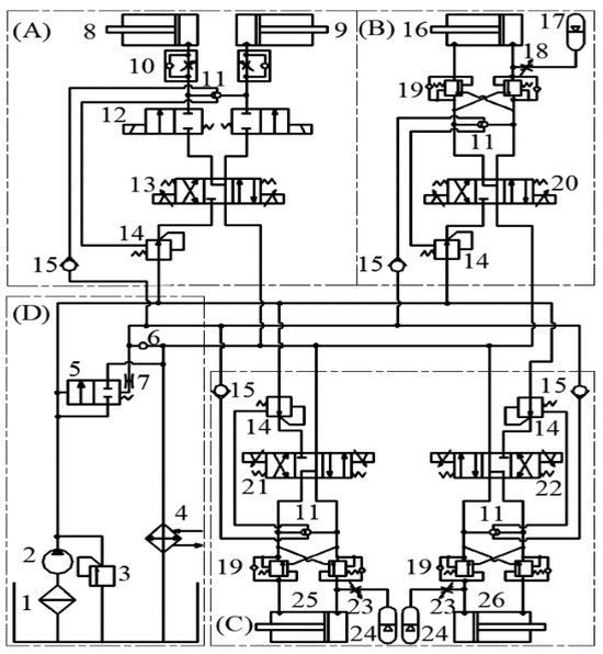 - Cui, L.F.; Xue, X.Y.; Le, F.X.; Mao, H.P.; Ding, S.M. Design and experiment of electro-hydraulic active suspension for controlling the rolling motion of spray boom. Int. J. Agric. Biol. Eng. 2019, 12, 72–81. [Google Scholar] [CrossRef]