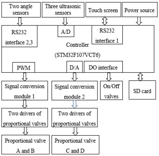 - Cui, L.F.; Xue, X.Y.; Ding, S.M.; Le, F.X. Development of a DSP-based electronic control system for the active spray boom suspension. Comput. Electron. Agric. 2019, 166, 105024. [Google Scholar] [CrossRef]