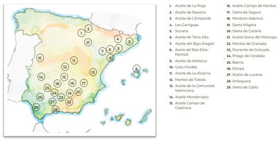They are all produced using mechanical processes (washing, decanting, centrifuge, and filtering) under specific thermal conditions that do not cause any alteration in the product [1]. According to the specifications for the 29 Spanish olive oil PDOs published on the EU website, the product certified by the PDO Regulatory Councils must be EVOO.