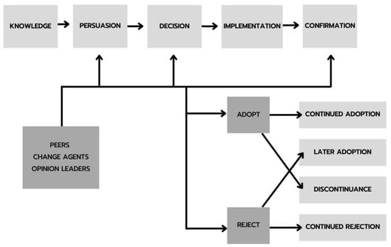 - Rogers, E.M. Diffusion of Innovations, 5th ed.; Free Press: New York, NY, USA, 2003; ISBN 978-0-7432-2209-9. [Google Scholar]