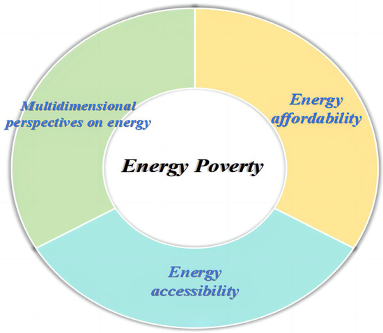 The second is based on energy accessibility. The International Energy Agency (IEA) defined energy poverty as the phenomenon of not having access to advanced energy sources and having to rely on biomass for cooking, heating, lighting, etc. Some scholars expanded this concept, such as Pereira (2011) [8], Charlier et al. (2019) [9] and Sovacool (2012) [10]; the first two scholars defined energy poverty as a state in which the actual household living energy consumption does not meet the basic needs of life, and the latter included the basic human living energy needs, the energy needs of social production and social service energy needs in the concept of energy poverty.