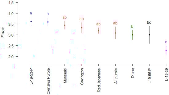| Variety | Flavor | Significance Groups (LSD) 1 |