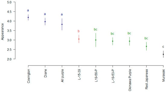 | Variety | Appearance | Significance Groups (LSD) 1 |