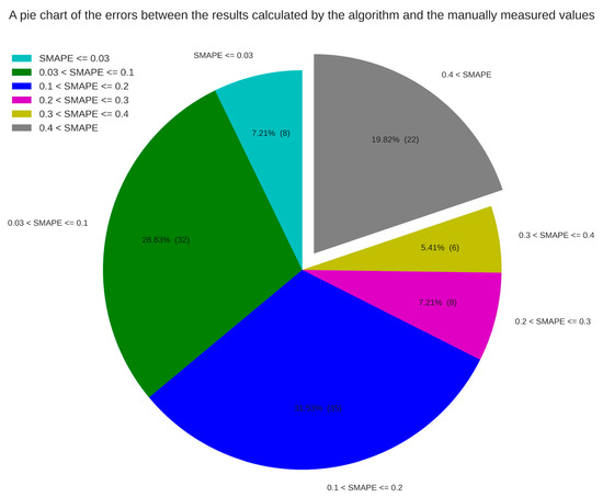 It is difficult to weigh each chicken during a feeding cycle, especially when almost every farm has thousands of chickens. The traditional method is to weigh a random number of chickens in different areas of the farm each week to represent the broiler growth on the sampled farm on that day. However, such a small sample measurement is usually biased and inaccurate. Either way, the truck collects the entire batch of broilers at once on the day of delivery (usually between days 28 and 32) and then calculates the gross weight of all of the broilers. In this study, a checkpoint was set every five days to validate the proposed framework, with days 5, 10, 15, 20, 25, and 30 serving as reference days to calculate differences and compare results, as shown in Figure 9 and Figure 10. However, due to the high cost of the inputs, only two such datasets were available, in addition to 111 datasets containing only the delivery day measurement data, which were used for validation as shown in Figure 11. Although all of the broilers were measured at one time in this case, the reference value of the data on the delivery date was not high, due to human interference during transportation. In particular, in order to avoid fines, staff usually take unqualified broilers away at will. Nevertheless, the validation results of this method on 111 datasets showed that 67.57% of the datasets had calculation errors below 0.2, of which 40 farms had SMAPE values below 0.1 and 7 farms had SMAPE values below 0.03. This demonstrates the practical feasibility of this method.