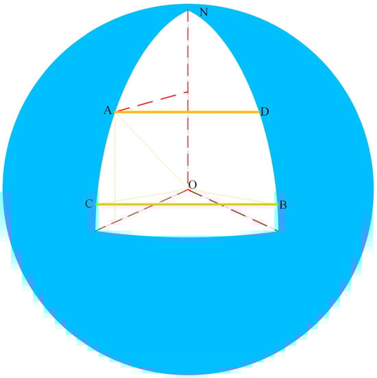 GNSS has the ability to calculate latitude and longitude automatically, but without the ability to calculate distance from one point to another point. For ease of calculation, the Earth was approximated as a sphere. The schematic diagram is shown in Figure 4. To determine the longitude and latitude  corresponding to points A and B, respectively, an isosceles trapezoid was constructed using points C  and D  at the same latitude as A and B. Given that ABCD is an isosceles trapezoid, the lengths of AD and CB were obtained, which helped determine the length of AB. Then, the central angle  of the concentric circle with AB as the chord was calculated, yielding . The radian was multiplied by the radius of the Earth (R) to obtain the distance between points A and B as follows: