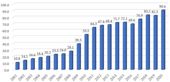 It would be difficult not to agree with U. Grzega, who points out the differences in the standards of living between urban and rural dwellers and between country regions (e.g., highly urbanized industrial zones vs. other areas). Depending on where they live, people have different structures of needs and ways of addressing them, and they differ in the share of the market and natural consumption in individual consumption. Also, they experience different availabilities of public consumption goods and services. The share of urban residents in the country’s total population entails consequences for the economic and social policy. An increase in the urban population means growing demands for dwellings and for catering, cultural, recreational, and other services. Living in a city usually means having one’s educational, cultural, and leisure needs addressed to a greater degree. However, the excessive concentration of people in cities can have adverse health effects (related, for instance, to pollution and noise), while also affecting security (e.g., road accidents due to increased traffic), which reduces the standards of urban living []. It is also worth noting that the countryside has a less developed technical, communication, and housing infrastructure and faces barriers to accessing services and state-of-the-art technologies. But on the other hand, rural areas enjoy an extraordinary value, which is also of importance to urban dwellers, namely, the natural environment. Agriculture has a particular role in rural resources and in contributing to the unique rural landscape (a value in itself). Also, it exerts an important impact on non-agricultural activities and on the comfort of rural living, i.e., on social well-being [].