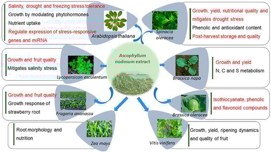 - Shukla, P.S.; Mantin, E.G.; Adil, M.; Bajpai, S.; Critchley, A.T.; Prithiviraj, B. Ascophyllum nodosum-based biostimulants: Sustainable applications in agriculture for the stimulation of plant growth, stress tolerance, and disease management. Front. Plant Sci. 2019, 10, 655. [Google Scholar] [CrossRef] [PubMed]