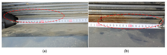 When the durability bench test of the cleaning sieve was carried out to 96 h, the cleaning sieve began to produce a periodic abnormal sound, and with the increase of the vibration frequency of the sieve, this sound became louder. The reason for this was the large gap between the left and right sides of the shaking plate at the front of the cleaning sieve and the lower inclined plate, as shown in Figure 9.