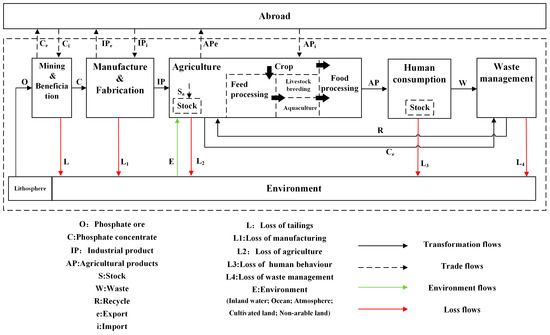 System boundary of the P flows in China.