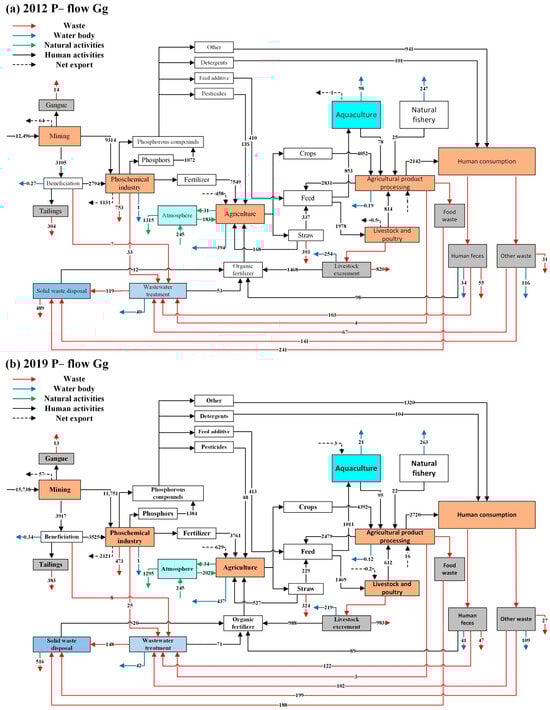 The overall framework of the P cycle model in China in 2012 (a) and 2019 (b).
