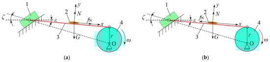 Similarly, when , the flax of the material slides along the screen surface (Figure 9b), when cosωt = 1, the angular velocity of the eccentric bearing reaches the limit value of the material sliding upwards. The limit speed of the eccentric bearing for material sliding downwards is: