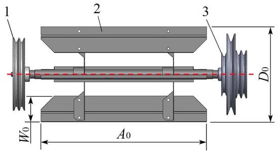 Schematic diagrams of the centrifugal fan structure: (1) Centrifugal fan power input pulley. (2) Fan blade. (3) Centrifugal fan power output pulley. Note: D0 is the diameter of the centrifugal fan in mm; A0 is the width of the centrifugal fan blade in mm; W0 is the height of the centrifugal fan blade in mm.