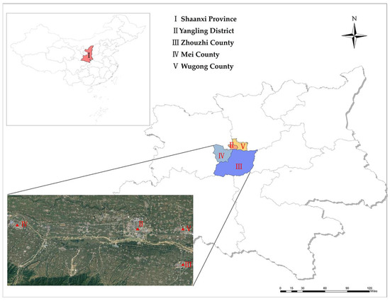 The data used in this study were extracted from a questionnaire survey given to kiwi farmers in Shaanxi Province, China. The survey was conducted from June to August 2021. Zhouzhi County, Mei County, Wugong County and Yangling District were included in the survey. These areas are the largest kiwi production hubs, in terms of both area and yield, in China (Figure 2). The choice ensured that the sample was as close to representative as possible. We also conducted a preliminary investigation in Lichen and Zhaixi villages in Yangling District to check the reliability and validity of the questionnaire. In this phase, a total of 100 questionnaires were distributed, and the response rate was 98%. The reliability and validity of the questionnaires were pre-tested, and a few unscientific indicators were eliminated. The questionnaire was revised and adjusted according to the responses collected upon relevant expert advice, and then a finalized version was formed. To choose samples, a combination of hierarchical and random sampling was used. The process was as follows: First, three to four townships from Zhouzhi County, Mei County, Wugong County and Yangling District were randomly selected. Then, four villages were randomly selected from each township. Finally, 20 to 30 ordinary households from each village were selected in random depending on the village size. In total, 1200 questionnaires were distributed, with a response rate of 100%. After eliminating questionnaires with missing data and invalid responses, we were left with 1138 valid questionnaires, with a 94.83% valid response rate. Interviews were conducted face to face, and the interviewers were trained beforehand. The investigators fully understood every question in the questionnaire to ensure the reliability of the results.