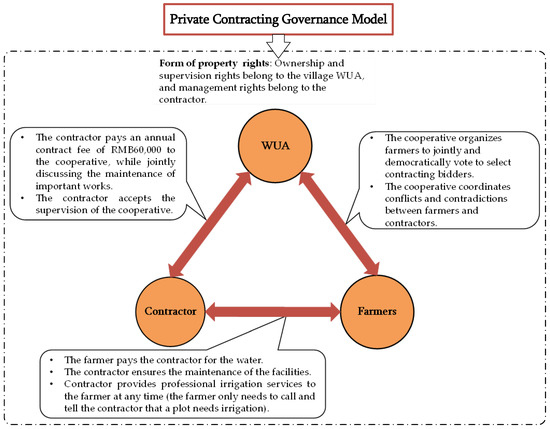 Disadvantages: On the one hand, it uses relatively larger amounts of water because demand-based irrigation, metered water pricing systems, and sprinkler irrigation technology can drive farmers to use more water; these are consistent with existing studies [30,31], resulting in relatively inefficient irrigation for farmers. On the other hand, the emergence of contractors and the ability of contractors are uncertain. First, there is no guarantee that every village will have a contractor for these water facilities, and second, there is no guarantee that all contractors will have a responsible attitude to serve farmers. This instability may affect the interests of farmers and national food security, so it has yet to have a universal applicability in the short term.