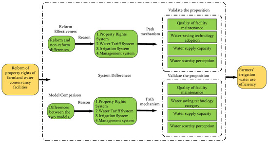 According to the above questions and the literature analysis, this study proposes an analytical framework to assess of the impact of property rights reform on irrigation efficiency (Figure 4).