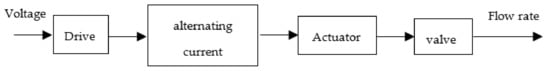 The DC motor transfer function in the solenoid valve was obtained by transforming Equation (4) using a Laplace transformation, as shown in Equation (5):