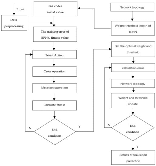 The essential factors of BPNN optimized using genetic algorithm t included the initial population, fitness function, select action, crossover operator, and revisited mutations.