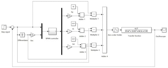 The built BPNN–PID control system model is displayed in Figure 12, while its simulation waveform is shown in Figure 13.