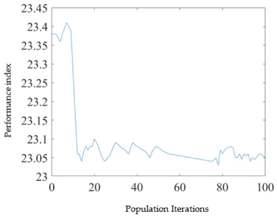 The iterative optimization process of the best individual of genetic algorithm is exhibited in Figure 14.