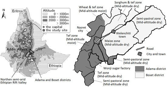 - Central Statistical Agency (CSA); Ethiopian Agricultural Sample Enumeration, 2001/02, Oromia Region, Statistical Report on Socio-Economic Characteristics of the Population in Agricultural Households, Land Use, and Area and Production of Crops, Part 1; CSA: Addis Ababa, Ethiopia, 2003.