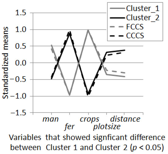Any factors did not significantly govern IF use in the CCCS plots (p < 0.05). This agreed with the field observations that virtually all the farmers used IFs to grow cash crops in all the masas, where compost was also partially applied. No “only IF-application” option was observed for the CCCS. In these circumstances, compost application to the CCCS plots can be considered a supplementary means to boost soil fertility. Compost is not a rival type of IFs, consistent with the BVP analysis (signs of ρ were positive for model 4), although the hypothesis of independence was proved. Thus, farmers’ soil fertility management practices for the CCCS plots in the study area appear to be an example of the integrated soil fertility management, which agronomists have recommended.