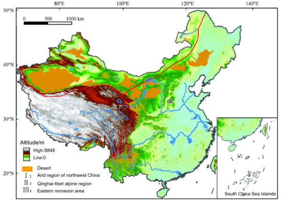 About 13.36% of the earth’s surface is composed of deserts, including the Gobi Desert [1,2,3,4]. Northwest China is a large region with a wealth of untapped resources in uncultivated soil. Xingjiang belongs to the temperate continental climate, the temperature difference between day and night is large, but the sunshine time is sufficient, with little precipitation, and dry climate. Despite constituting 1/6th of China’s total land area, it severely lacks resources for land cultivation (Figure 1). Xinjiang has a per capita cultivated land area of just 0.2 hm2 [5]. This continuously encourages the expansion of facility agriculture in Xinjiang to uncultivated land, such as the Gobi, saline-alkali, and desert land. One of the critical solutions to the lack of rigidity of cultivated land resources in our area has been to find ways to enhance the usage of non-cultivated land resources. This has also become an essential strategy for promoting the sustainable growth of facility agriculture in Xinjiang [6].