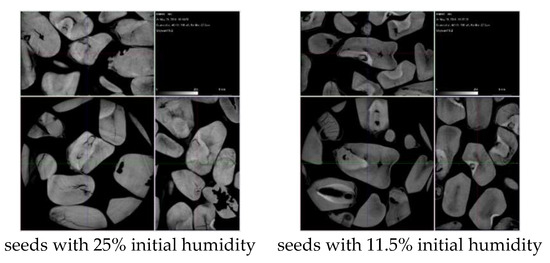 Seed quality is impacted by postharvest practices and seed management. In order to produce high-quality seeds, it is important to regulate the various postharvest processes, such as drying and storage, where environmental factors, including moisture, temperature, and relative humidity, are vital [1,2]. Agricultural plant seeds that undergo technological drying have diverse behaviors based on their physicochemical characteristics. Some of them cannot withstand the harsh drying conditions caused by the air moving quickly through the product layer at high temperatures. One of the most energy-intensive postharvest procedures is grain drying [3].