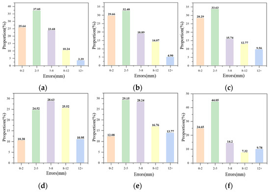 HD distribution ratio of standard spherical distance set. Diameters of (a). 200 mm; (b). 300 mm; (c). 350 mm; (d). 400 mm; (e). 500 mm; (f). 600 mm.