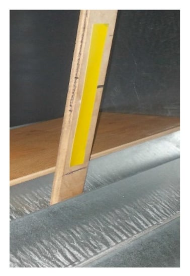 The wind tunnel (Figure 1) [] for the experiments was developed according to the methodology described by Farooq et al. []. The wind tunnel cross-section increased from 0.9 × 0.9 m at the entrance to 1 × 1 m at the exit with a slope of 0.5°. The chamber was 5 m long in total.