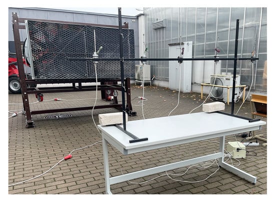 Experimental tests were conducted in 2021–2022 at the Department of Agricultural Engineering and Safety, Vytautas Magnus University Agriculture Academy in Lithuania. Techniques to measure spray drift and drift potential included those based on field measurements and the use of wind tunnels. From an experimental point of view, the main use of wind tunnels was to produce stable air flows as compared to field conditions [].