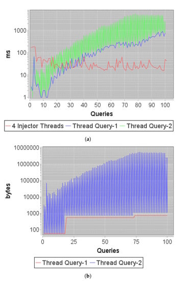 - Concurrent Injection-Query (Section 4.8). Execution of a set of queries, each one on a thread-client concurrently and in parallel to the injection of data through several injector clients (Ind-II, III, and IV).