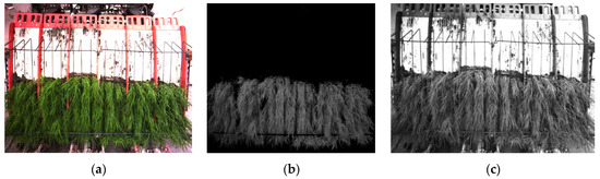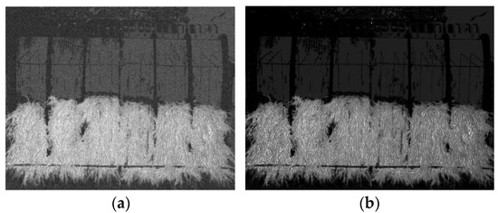 The component method and weighted average method are the several grayscale methods widely used at present. The images of each seedling row in the seedling box collected in this paper are color images with a resolution of 1280 × 1024, which are superimposed by three channels R/G/B. The expressions of the component method and the weighted average method can be described by Equations (14) and (15), respectively.