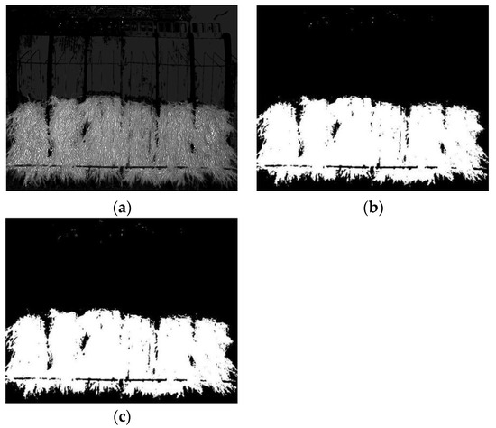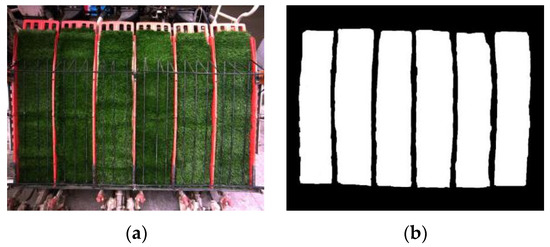 Machine vision technology has been widely used in many agriculture applications such as weed detection [17], disease detection of crops [18,19], obstacle detection [20], crop row extraction [21,22], detection of crop growth state and yields [23], defect non-destructive detection of horticultural products [24], visual navigation [25,26,27,28], and so on. The navigation control of the crawler tractor based on the integration of satellite and vision was proposed [29]. The image segmentation is achieved using the ExG(2G-R-B), Otsu, and mask method. Then, the region of each rice row is classified by the region search algorithm. A real-time dual-spectral camera system was developed for paddy rice seedling row detection [30]. By applying the AND operation between two thresholded images made from an NIR image and a subtracted image, the noise originating from the reflection of the sky and tree crowns could be eliminated. The crop row detection of maize fields was achieved by a computer vision system [31]. A rice seedling row recognition method based on row vector grid classification was developed [32]. An end-to-end CNN model composed of seedling feature extraction and row vector grid classification was built, and seedling row recognition was converted into a grid classification problem based on the row vectors. These studies indicated that it is feasible to conduct the monitoring of the seedling amount in the seedling box based on machine vision.