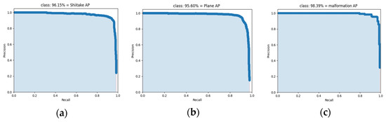 where is the number of fresh shiitake mushrooms detected correctly, is the number of fresh shiitake mushrooms detected incorrectly, and is the number of fresh shiitake mushrooms missed. For each category in the target detection, a curve can be plotted based on the accuracy and recall.