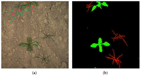 Example of an image found in the Sugar Beets dataset and its respective segmentation mask. (a) Image. (b) Segmentation mask.