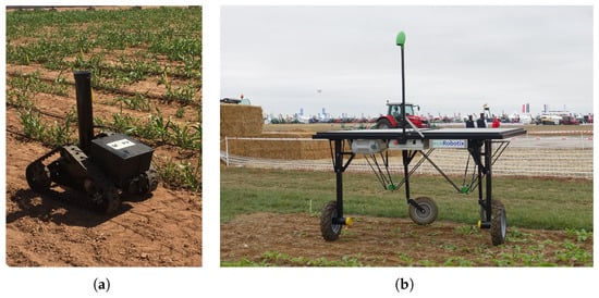 Terra-Mepp (a) and EcoRobotix (b) robots in the field [,].
