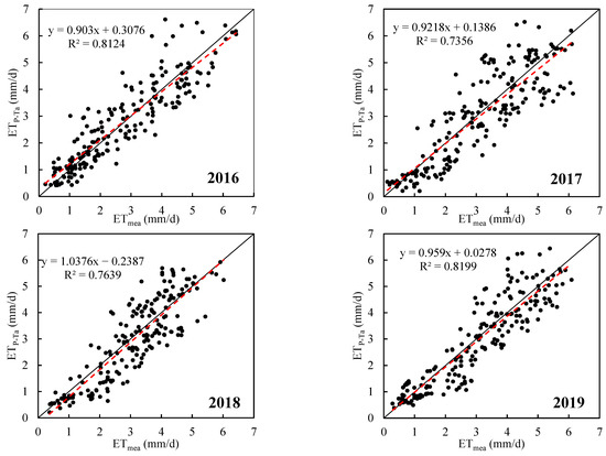 3.2. Comparisons of Daily Jujube ET Estimated with the P–T Model and Measured Using a Large Weighing Lysimeter