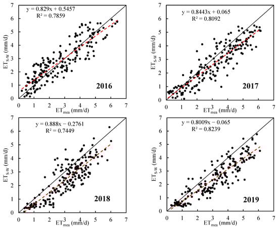 3.4. Comparisons of Daily Jujube ET Estimated with the S–W Model and Measured Using a Large Weighing Lysimeter