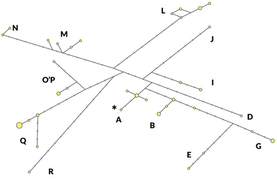 - Rozas, J.; Ferrer-Mata, A.; Sánchez-Delbarrio, J.C.; Guirao-Rico, S.; Librado, P.; Ramos-Onsins, S.E.; Sánchez-Gracia, A. DnaSP 6: DNA sequence polymorphism analysis of large datasets. Mol. Biol. Evol. 2017, 34, 3299–3302. [Google Scholar] [CrossRef]