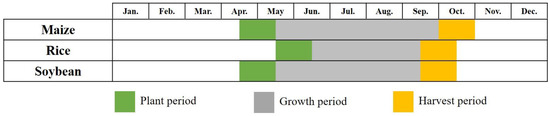 The main crop periods in the study area.