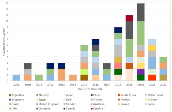 Years of publication and countries of the corresponding author’s home University of included literature.