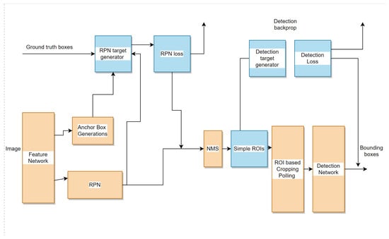 Faster R-CNN, the most popular modern variant of the R-CNN series, was released for the first time in 2015. The object proposal method was the only independent network component in the fast regional convolutional network. Faster regional-based CNN and simple RCNN both employ object detection algorithms that are dependent on the hardware capacity. The CPU-based selective search technique, which processes one picture in approximately two seconds, is shown in Figure 8. Moreover, it employs a region proposal network (RPN) to provide object detection recommendations. This improves feature representation overall by reducing the object proposal time per picture from 2 s to 10 milliseconds and enabling the object detection step to share layers with the succeeding detection stages.